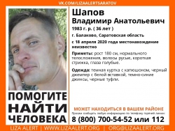 Пропал 36-летний Владимир Шапов из Балакова. 18 апреля текущего года он ушел из дома и не вернулся. С тех пор его местонахождение неизвестно.