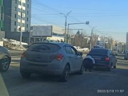 Сегодня, 15 февраля, у гостиницы "Олимпия" в Октябрьском районе Саратова, произошла дорожная авария, создавшая серьезную пробку.