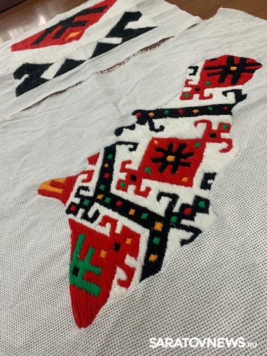 В Центре народного творчества подготовили вышитую гладью территорию Саратовской области с народным орнаментом для общей карты России.