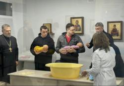 Вот уже в который раз в поликлинике прошла уже ставшая традиционной «Школа молодого отца». Вместе с руководителем неонатологической службы Перинатального центра Алексеем Долотовым и священником Покровской Епархии Аркадием Махсумовым будущие (и уже настоящие) папы учились правильно брать на руки и класть в кроватку малыша, готовить ванну и купать, пеленать - в общем, делать все то, что должен уметь каждый уважающий себя мужчина.