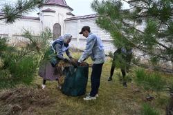 Субботник, который выпал на выходной день, участники провели с пользой для здоровья и дела. Поделились на группы по 5 человек и распределились по масштабной территории монастыря. Убрали листья, ветки, подрезали кусты, подмели дорожки, выложили камни, решили проблему с насекомыми и сделали много других добрых дел.